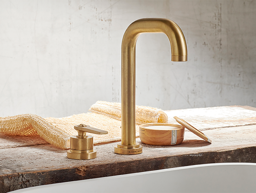 A bathroom is one of the most frequently used rooms in a home, and fixtures like taps need to combine form and function. Brushed brass delivers on both fronts.