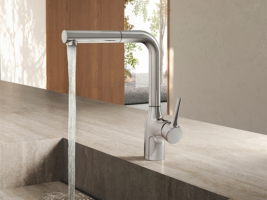 Mania mixers feature Nobili’s Low Friction Ceramic Disc System for smooth, precise control. The forward-rotating lever protects splash back in compact spaces, while generous spout height and the convenient pull-out spray option make everyday kitchen tasks faster and easier.