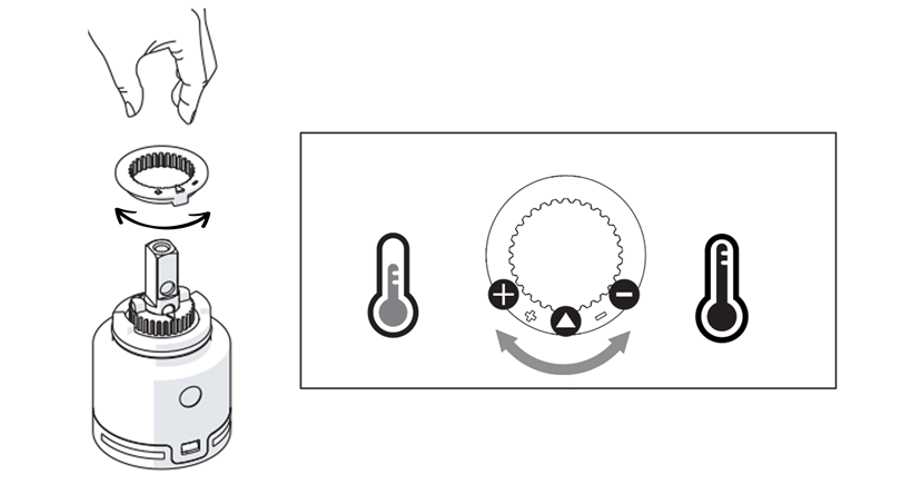 A useful feature of Nobili's Mania Collection is the Temperature Limiter. The cartridge has a reducer that limits the maximum temperature delivered by the mixer, reducing the consumption of hot water and, at the same time, avoiding dangerous scalding risks. You can configure it to suit your needs by simply turning it to the left or right.