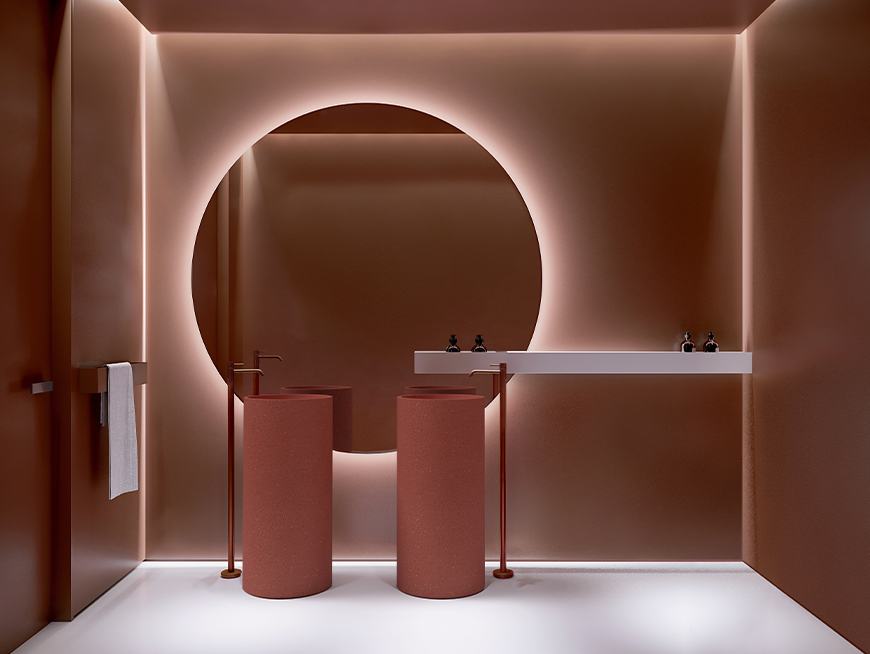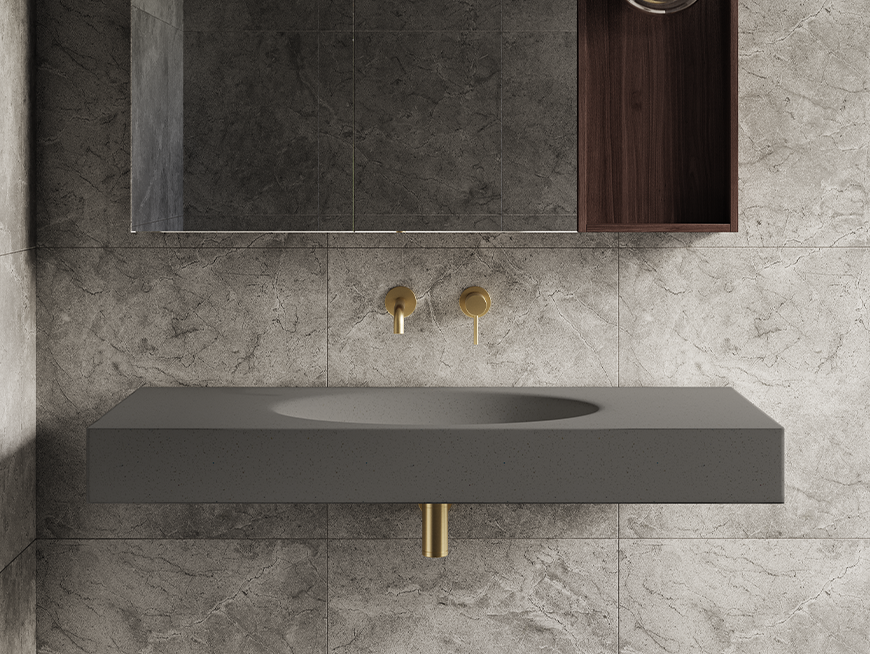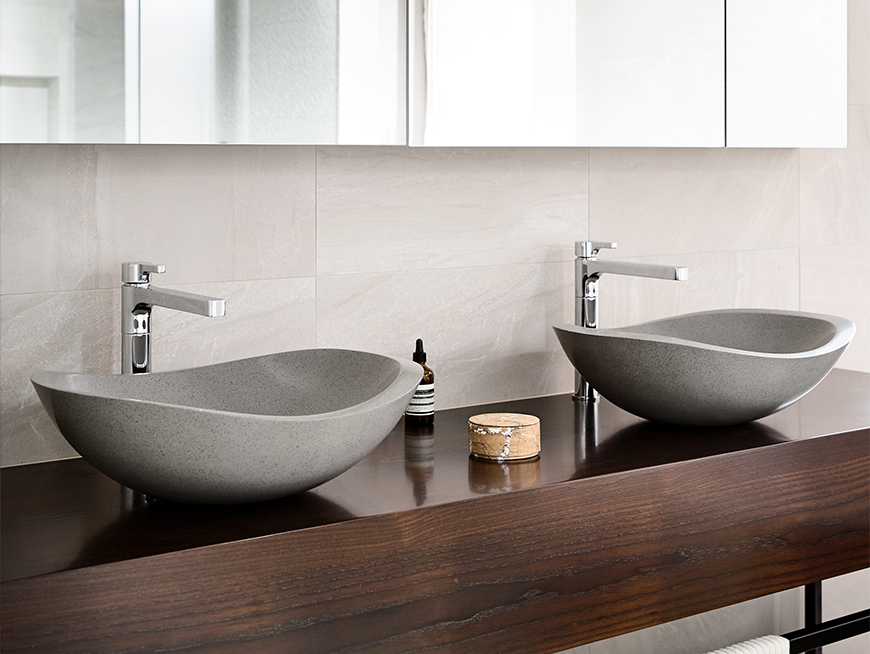 The Lunar basin combines bold geometric shapes with subtle textures, making it perfect for modern bathrooms seeking a statement piece.