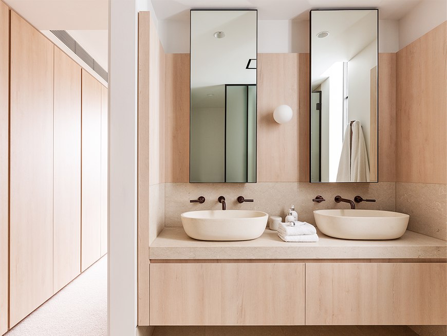 Let your textured basin take centre stage by keeping surrounding elements understated. A simple mirror or minimalist lighting can frame the basin beautifully without competing for attention.