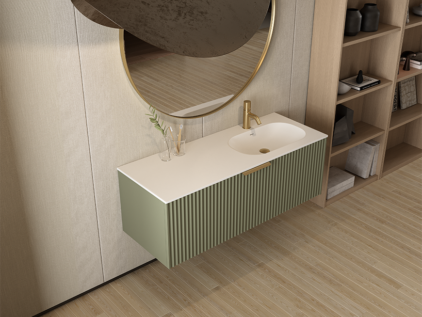 Mix smooth surfaces with textured ones, pairing fluted basins with polished countertops or terrazzo basins with matte tiles can create visual harmony while maintaining interest.