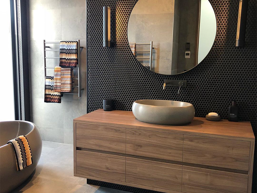 To maximise the impact of textured bathroom basins in your design, consider the following styling tips: